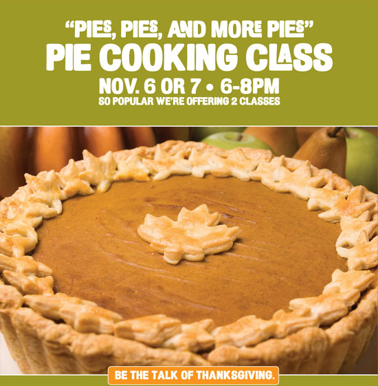 Learn how to make flaky pie crust, sweet crust, the art of rolling out pie dough, what apples are best for baking, pans to use and how to make meringue. Each participant will receive a collection of recipes, 10% discount card for Market items and a baby pie to take home and savor. $65 per person