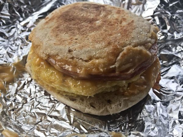 The sandwich was a pretty standard breakfast sandwich with a whole grain English muffin, a fried egg and cheese. What made this one different was the use of Canadian bacon instead of regular bacon. The bacon was grilled so the edges were were nice and crispy, but the center of it was still soft and salty.
