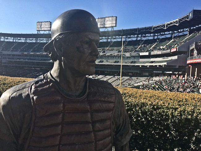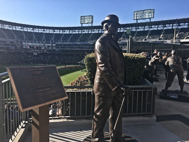 The outfield also home to a number of life-sized bronze statues of White Sox greats. A few years ago, my dad I went to PK Day where they retired Paul Konerko’s number. He was one of those people that had to get in line to get the giveaway because the giveaway was a replica of Konerko’s statue in the outfield which depicts his game winning home run in the 2005 World Series. Other statues include Fisk (see above), Harold Baines, Minnie Minoso, Frank Thomas, Billy Pierce, Nellie Fox, Louis Aparicio, and Charles Comiskey.