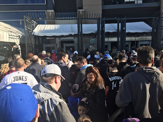 I’m always surprised at how early people get in line to get in the park. The giveaway for this game was a zip up hoodie for the first 15,000 fans. I never get worked up over the free stuff they giveaway. If it’s clothes, it never fits me. If it’s anything else, it’s just junk that will sit on a shelf. I used to be that kind of collector, but I’m not really anymore. Still, most people are and free is free. The lines to get in formed two hours before the game and when we headed to the gate an hour beforehand, there was still a sea of people waiting to go through the MAGS and get into the park.
