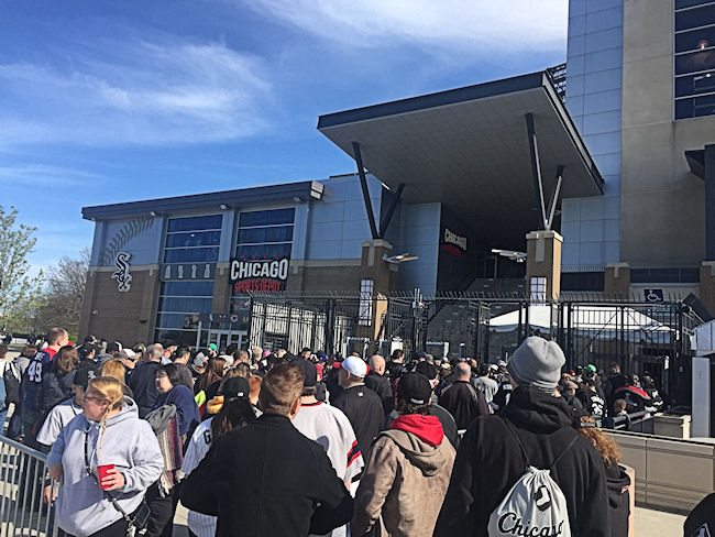 So, here’s the thing I hate, hate, hate, hate, hate, hate, hate, hate, hate about Guaranteed Rate Field. Notice the gates there and people checking tickets in that shot above? We’re already in the park. Why are they checking tickets?