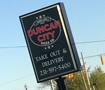 Duncan City Pizza is a small pizza shop on Main Street on the southside of Cheboygan. It shares a building with a State Farm office near the corner of South Main Street (also M-27) and Lincoln Avenue.