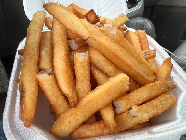 I started in on the fries as soon as I got in the car. They were hand cut fries with a really crispy exterior but soft middle. I didn’t really get much of the salt and pepper seasoning. If I wasn’t in a rush, I probably would have tried the loaded fries but these were good on their own. I always like a solid fried potato.