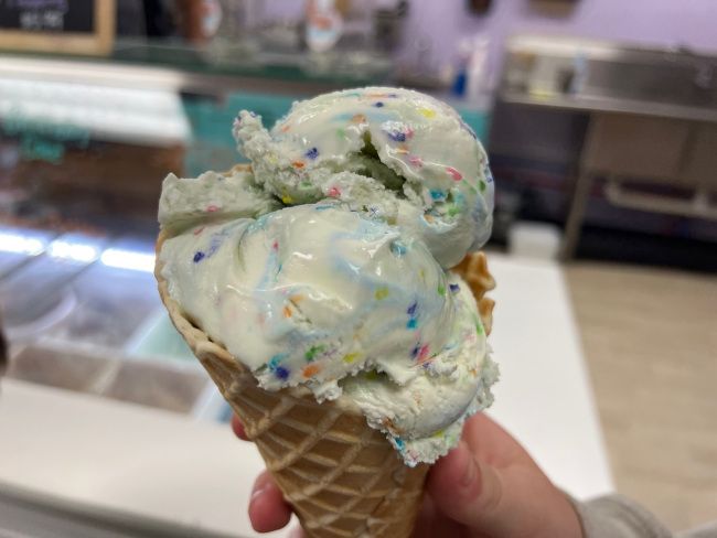 Both kids chose to do Birthday Cake Ice Cream. L went with the waffle cone