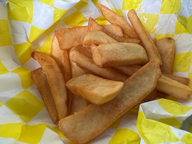 The basket came with fries and a drink. To my surprise, the fries were not crinkle cuts. They were still frozen food service fries but they were the steak fry version. There were packets of salt included with each order of fries so you could decide how much or how little to put on.