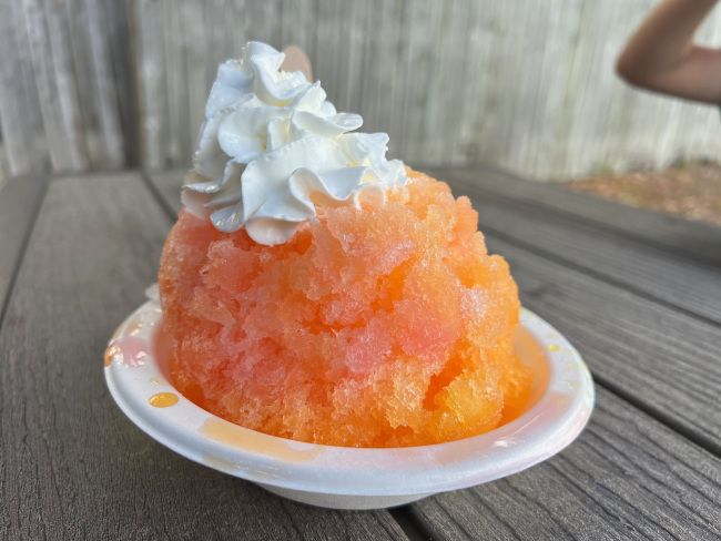 I was the boring one so we’ll start there. I got small with just orange flavoring. It’s the only thing I ever get when I get snow cones or shaved ice. I like the boring old orange flavor.