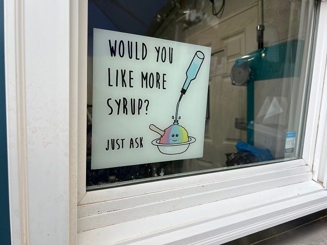 Hau’oli is such a simple concept but, as I mentioned earlier, it’s pretty unique to Southwest Michigan. You can find snow cone places at the county fairs but Hawaiian shaved ice is different. Shaved ice is fluffier than crushed ice used in snow cones and the flavor combinations lean towards the tropical. I guess the ice cream in the shaved ice is something popular in Hawaii….I wouldn’t know..never been there…but I know people get excited about it.