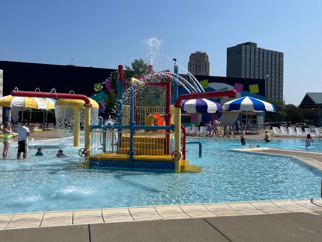 Flash Flood Water Park is part of the Full Blast recreation complex on the corner of Hamblin Avenue and Capital Avenue in downtown Battle Creek. The water park part of the complex has an entrance from the parking lot on Hamblin so you don’t have to go inside the rec center.