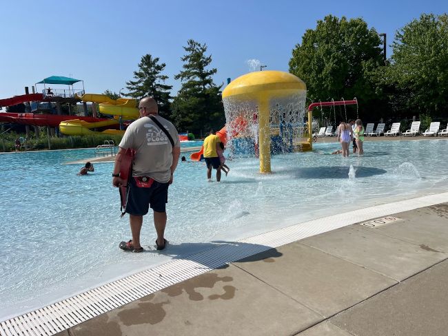 The pool area of the water park is pretty standard pool stuff. It goes from zero depth for the littles when you first walk in to a little over 4ft deep on the far end of the pool where the slides are. There is a small play structure and some water feature for the smaller kids in the zero depth area.