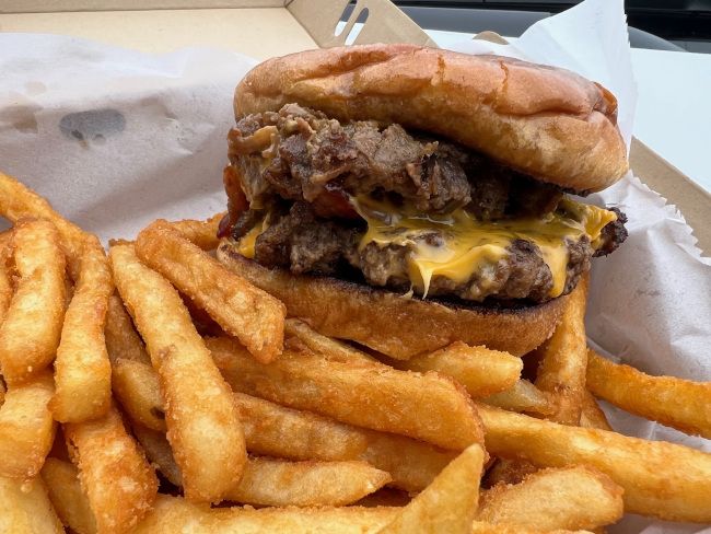 My order was for the Chicago Burger and an order of fries. The sandwich was boxed up and ready by the time I got to the restaurant to pick it up.