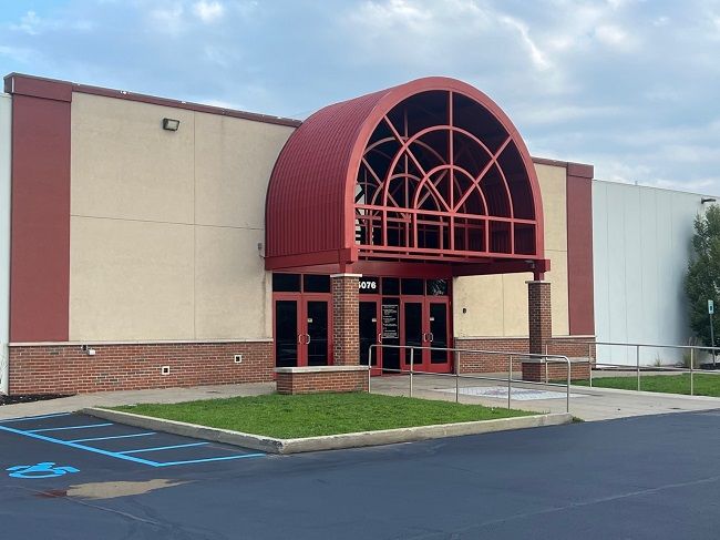 The entrance to the rinks is on the side of the building. there’s some parking along the driveway here but most of the parking is either in the back or in the front where the entrance to the restaurant is.