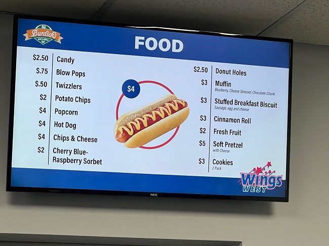 There are actually two food options on big event days at Wings West. There is a concession stand in the upstairs lobby that is open for big games and competitions. This was only open for a couple hours in the morning this year. They have the typical concession stand food. There’s candy, popcorn, and pretzels. All the snacks to keep the kids happy during those long days at the rink.