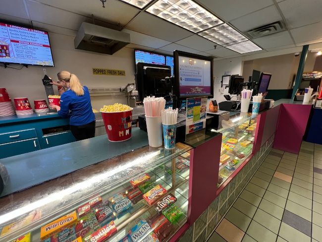 The theater isn’t very big. It has six screens and all are accessible from a hallway just past the concession stand.