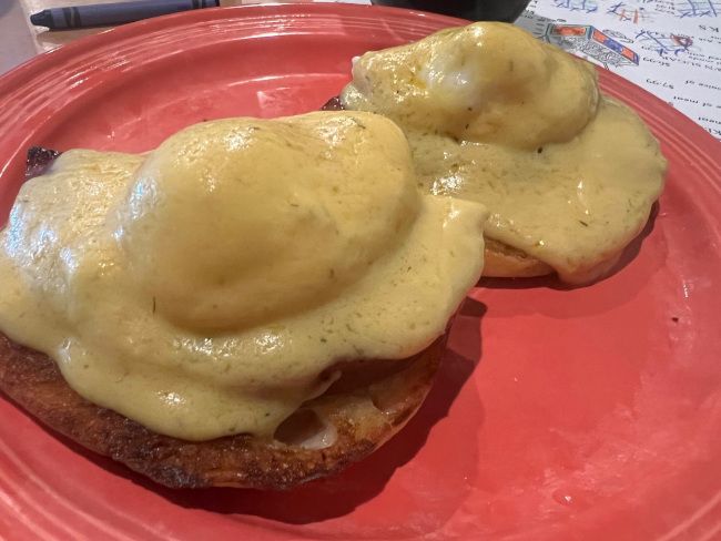 I was hungry but didn’t want to overdo it. I picked the Long Island Benedict. This plate is a pretty standard Eggs Benedict with a toasted English Muffin, grilled ham, poached eggs and a hollandaise sauce. It’s a standard Benedict, but also a really tasty one. The poached eggs were soft, not runny, which actually made the dish a little more enjoyable to eat. The firmness of the egg made it a little bit easier to eat. The Benedict didn’t come with any sort of side…not potatoes or anything. I guess I just assumed all breakfast plates come with some kind of potato. It was a little bit of a bummer at first when I realized it but the Benedict was pretty big and pretty satisfying by itself.