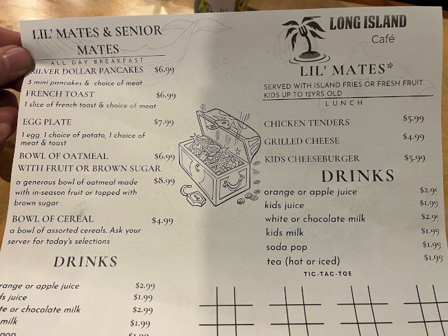 B didn’t even take the time to look at the kid’s menu when we sat down. He grabbed the crayons and started trying to force me in to a tic tac toe game. When I asked him to look at the menu, he just said, “you know I want pancakes and bacon.”