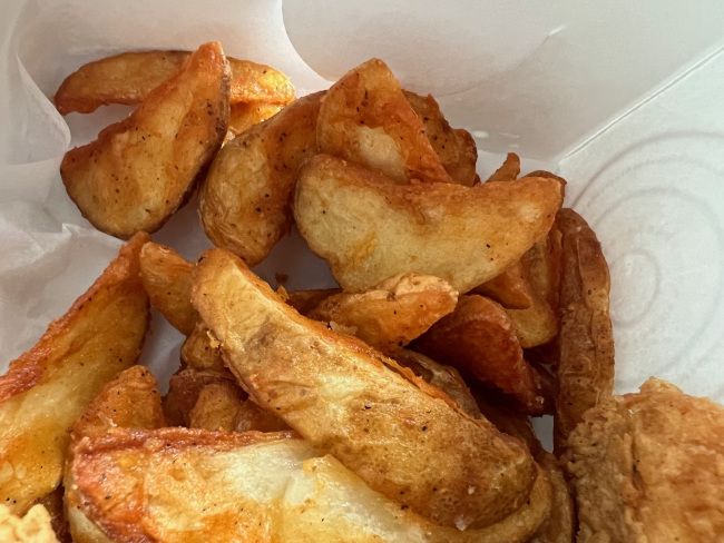 I started with the potato wedges when I got in the car. They were small wedges which made them a lot better than the typical long, thick wedges most chicken places have. These were actually really crispy on the outside and cooked all the way through. There were quite a bit of the potatoes in the box hidden underneath the chicken. I felt like I just kept finding more and more.