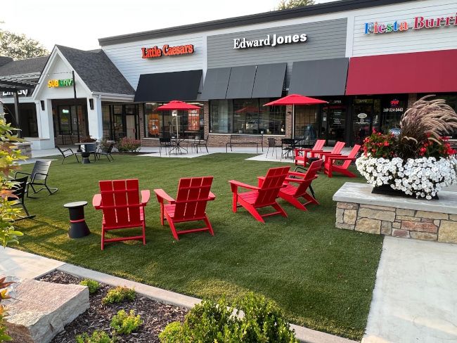 One of the new features is right outside the doors. There’s a great little common space for the businesses in the shopping center. There are some tables to sit an eat and some Adirondack chairs if you just want to relax and look at the Little Caesars sign…but it is a nice little green space to break up the the parking lot from the businesses.