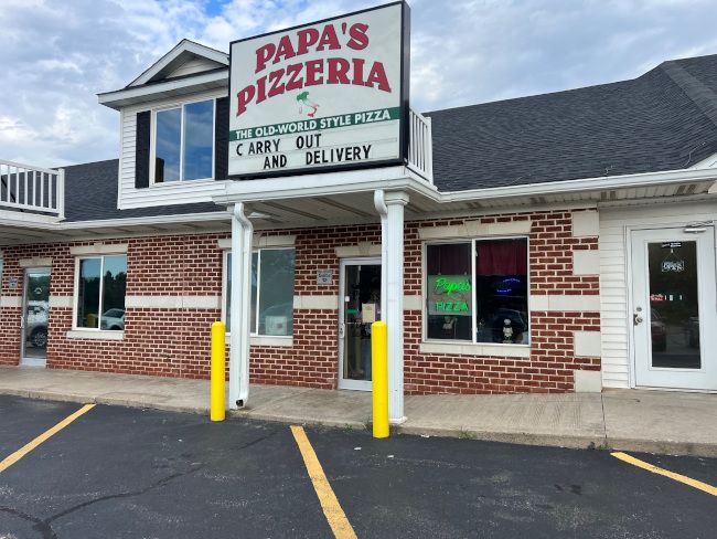 Papa’s Pizzeria is M-62 just north of Elkhart Road kind of in the center in Edwardsburg. The small shop in the Village Commons strip mall is the small town’s only pizzeria.