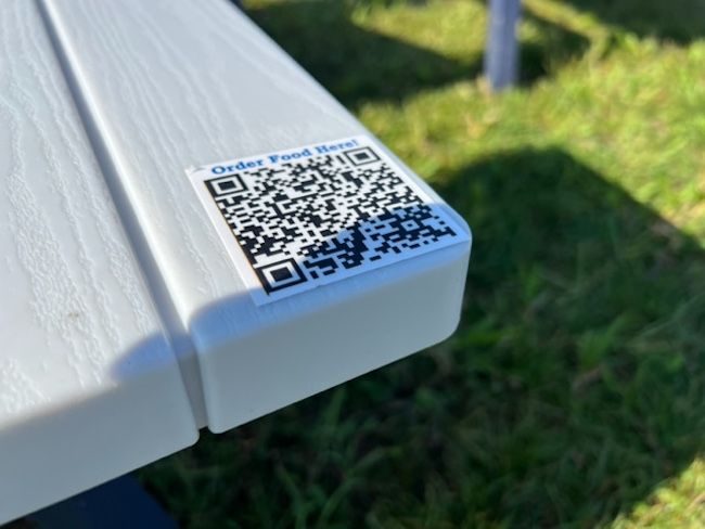 The table itself isn’t linked. The food is brought out to a table next to the outdoor bar then you receive a text message when it’s done. All of the boxes have a name on it so you know which ones are yours. You can also get silverware, napkins, and there’s a water jug with some plastic glasses you can grab.