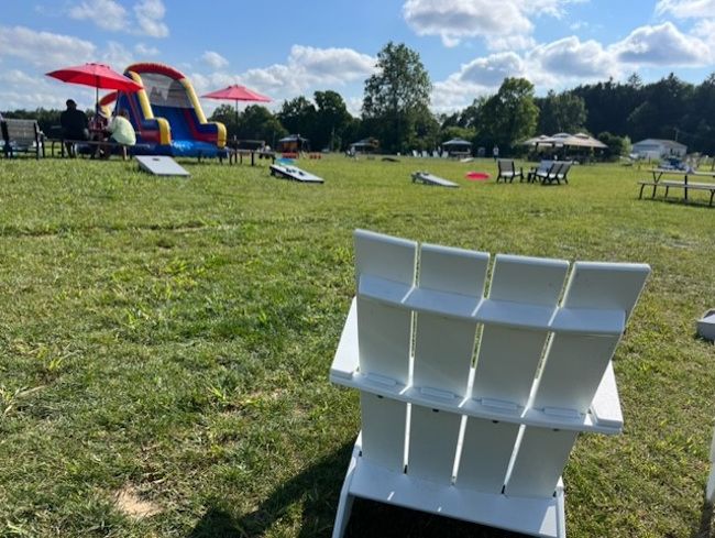 The yard is huge. There’s a lot of space. In that space, there are a lot of different seating options. There are some Adirondack chairs if you’re just chilling with a spouse or a friend. There’s picnic tables if you’re planning on eating. There are even gazebos you can rent for larger parties which provide the most shade.