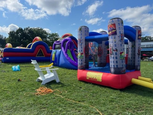 For the older kids, they’ve had bounce houses and water slides the last few weeks. B headed straight for the non-water obstacle course. We didn’t bring his suit because we didn’t realize there’d be water. Amazingly, he listened to us and stayed out of the water. You can usually check their Facebook page to see if they have inflatables like this and/or water features.