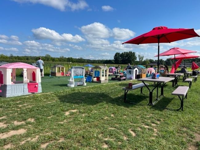 The idea of the yard is to be social. There are a lot of things for kids to do and yard games for adults.