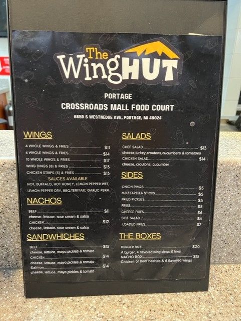 The Wing Hut opened it’s second location inside the Crossroads Mall a few months ago. They’ve had a pretty good run at their store on Howard Street near WMU and that store remains open. This new location is in the food court at the mall. It’s one of the first places you see if you come in through the food court. They moved in to the spot that used to be Paulie’s Cheesesteak.
