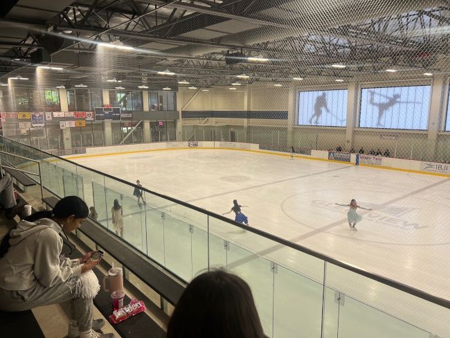 The second ice sheet, Rink B, was used for practice ice. L had two practice sessions on Thursday night. Both took place on Rink B while the competition continued on Rink A. The ice surface in Rink B is the same size as A but the spectator seating is much smaller. Like Rink A, seating is above the rink. It didn’t matter too much for this because we were just there for about 20 minutes or so just to watch the skaters practice.