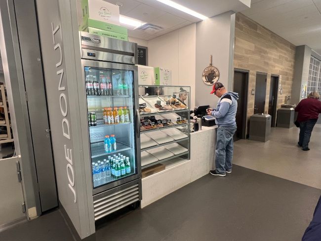 The main level also has a donut shop open in the mornings. I dove in to that in a separate blog post…. but L actually passed up food from Starbucks on the way to the rink because she wanted a donut from Joe Donut when we got there.