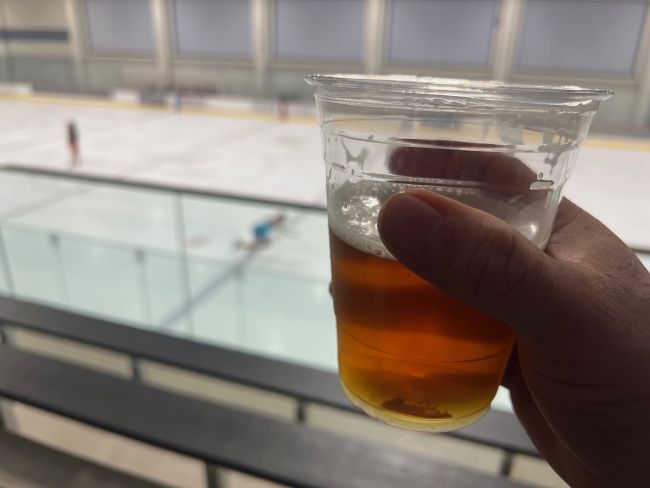 We kind of took over the seating area during the day and did a lot of Door Dashing for food. J and I both ordered from there multiple times but also, we were in Chicago, as you will soon see from other blog posts, there was a lot of Chicago food to be had. We did take advantage of the alcohol though. Just like Wings West, they have a solid beer selection and you can take it in to the rink with you.