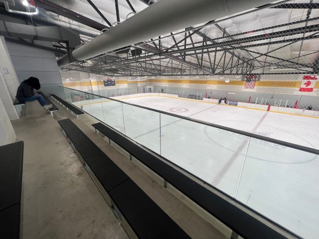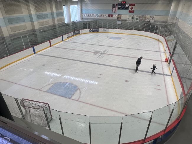 The third rink is much smaller. They call it the “Studio Rink.” It’s a 90′ x 60′ rink set up for pee wee hockey. Instead of putting up a temporary wall at center ice and playing games on half the rink, they have a rink designed for the little kids. They also use this rink for ice bumper cars…which I’m not gonna lie, we all wanted to try but they were booked up. It was fun to watch though.