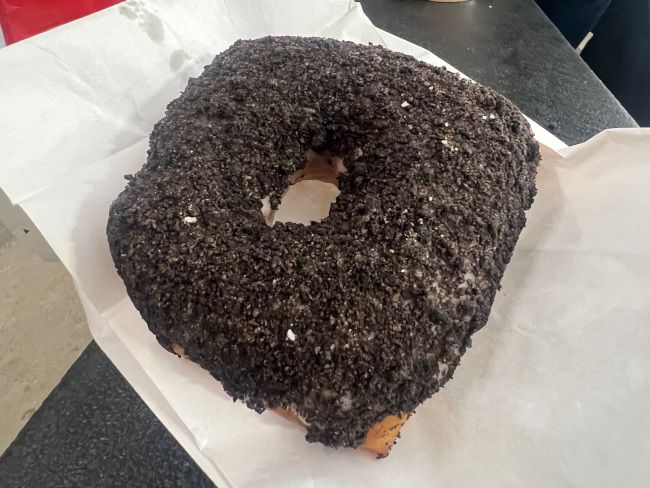 L got the donut I would have picked. It’s a raised donut with crushed Oreo’s on top. The square donut is pretty large and has a thick layer of crushed Oreos and a vanilla cream completely covering the top of it. I thought for sure L would only eat half but she tends to carbo load when she’s nervous so she devoured the whole thing.