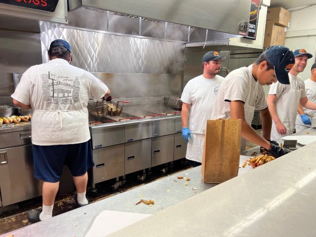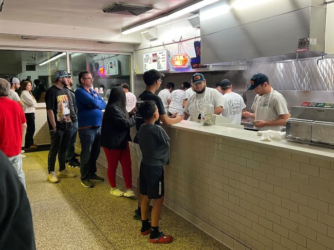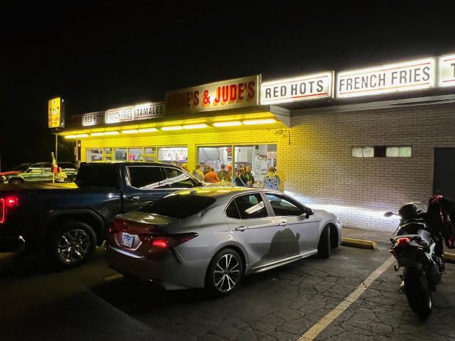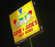 I got to Gene & Jude’s around 11:00 on a Friday night. The parking lot was packed and there were people hanging out by their cars eating hot dogs.