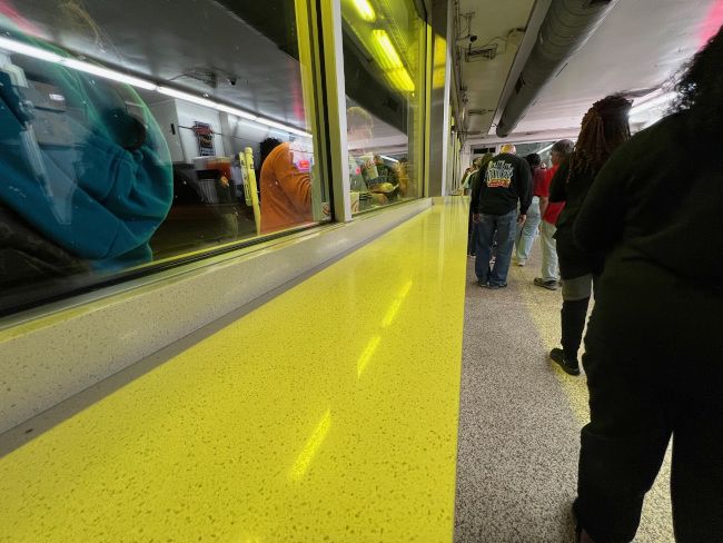 There is a little ledge on the outside of the building to stand an eat. It’s not much but there’s enough room to put your dog and a drink down. Standing and eating is such a Chicago thing. The handhelds are so messy you’re expected to “hunch” over the counter and eat so you don’t get anything on your shirt.