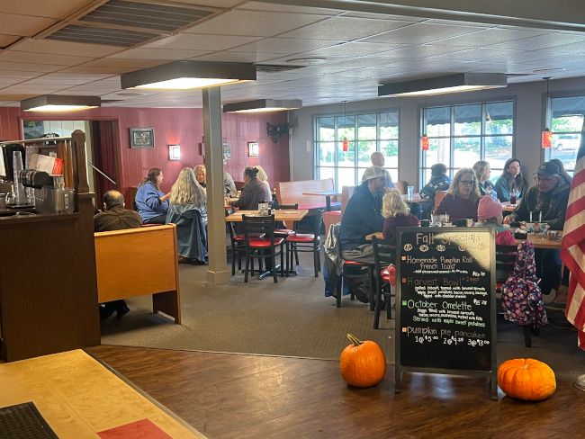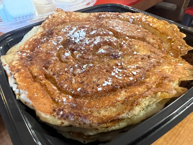 I picked Liz’s Parkview Cafe because I saw “October Specials” earlier in the week on Facebook. They included a Pumpkin Roll French Toast and Pumpkin Pie Pancakes. I assumed J and L would come with me to the soccer game but when it started raining, they were out. I already had my mind set on going to Liz’s so we went anyway. I sent a picture of the specials board to J and asked if they wanted something. She said yes to the pancakes so I put in an order to go when the waitress brought out B and my food.