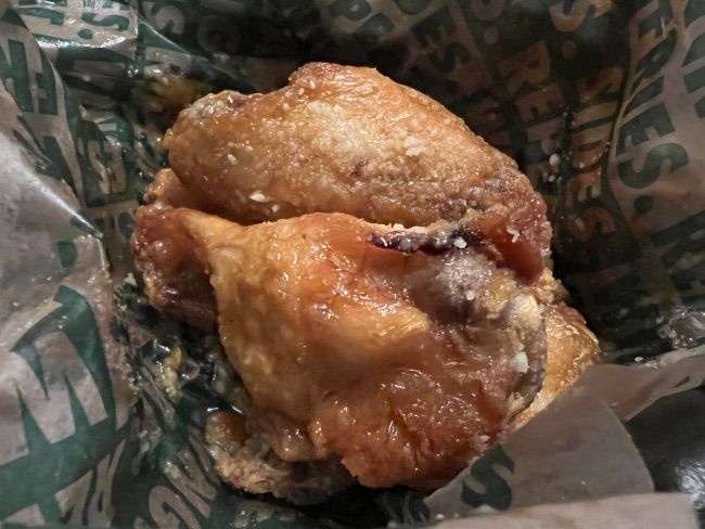 My order was the 10 piece wing combo (bone in) with a side of the Louisiana VooDoo fries. I split the wings between Garlic Parmesan and Original Hot.