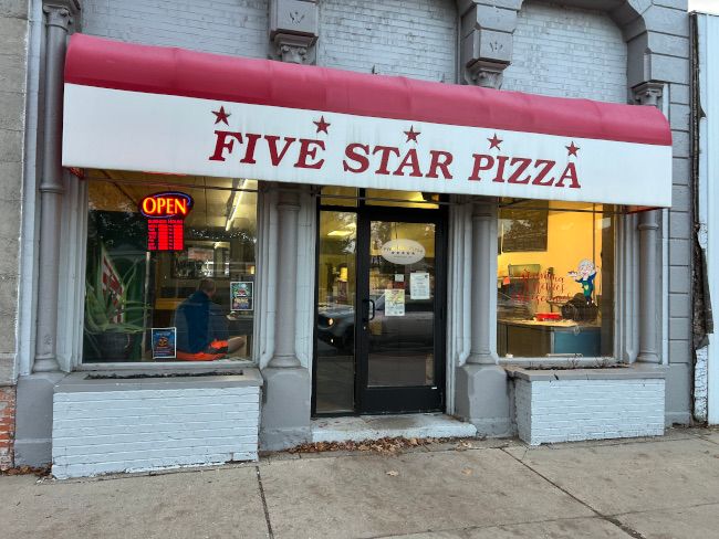 Five Star Pizza is a small chain of take-out delivery spots in southern Calhoun, Branch, and St. Joseph Counties. There are five locations. The Union City location is on Broadway Street on the northside of downtown Union City near Charlotte Street. The building is an old brick two story building with the bottom floor separated in to two different store fronts. You can’t miss the red and white awning with the words Five Star Pizza on front.