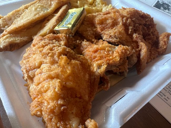 Lou’s Market & Deli kind of continues on with the great things Finks and The Dawg House did in this spot but they’re adding some more options too. They’ve only had the business for a short time and talk on their Facebook page about plans they have for the future. This is some of my favorite chicken in the area and I grab it quite often on my way through Vicksburg. J works just down the street and walks here often. She’s very excited about the soup selection now that it’s soup season.