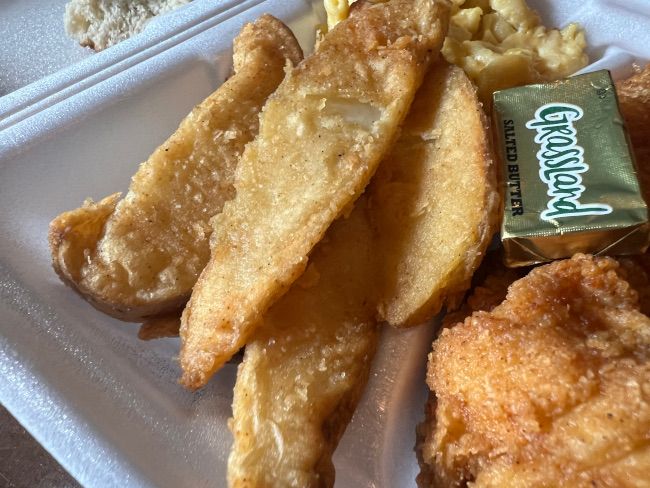 I started with the potato wedges when we got home since they were already starting to get cold. The wedges were pretty standard wedges with a little bit of seasoning on the outside. They still had a pretty nice crunch on the outside and the inside was pillowy and soft.