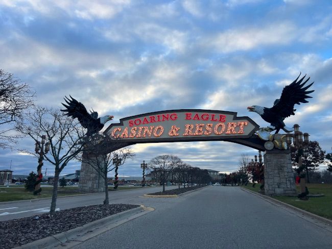 I pulled in to Soaring Eagle around 4:30. The entrance to the casino is Leaton Street near the intersection with Pickard Street/M-20 east of Mt. Pleasant on the Isabella Reservation. The entrance is well marked and not hard to find. You enter the property then come to parking lots where you choose to either go to the casino or to the hotel.