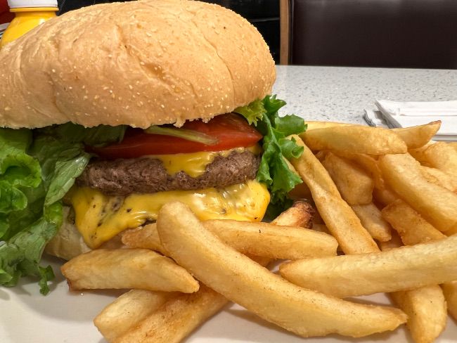 The Classic Double Burger is exactly what it sounds like. The sandwich is two grilled 1/3 burger patties topped with lettuce tomato, and (American) cheese. It’s a simple burger but it tasted really good after a long day of driving and work. I know it’s not a typical Thanksgiving dinner, but this was really what I needed at that moment. Simple and delicious. The sandwich came with fries that were also simple. Luckily there was mustard on the table so I put way more mustard on my plate than I should have and used the fries to soak it all up.