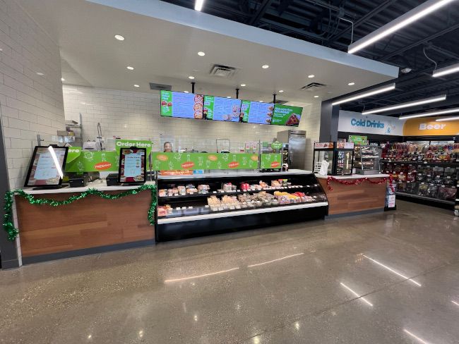 The fresh food part of Kum & Go is almost in front of you when you walk in the door. There is a large counter where sandwiches and pizzas are made. The menu hangs above that on TV screens and there is a grab and go section if you’re just looking for a quick deli sandwich.