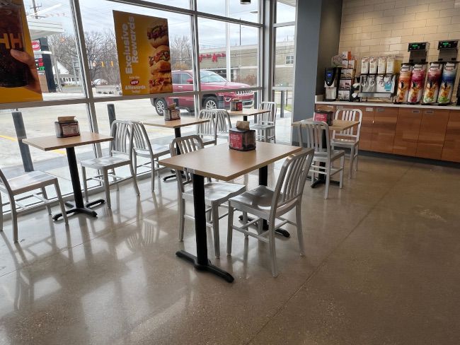There is a small dine in area near the front doors with. After I paid, I sat down and starting eating the pizza while waiting for my name to be called letting me know my sandwiches were done.