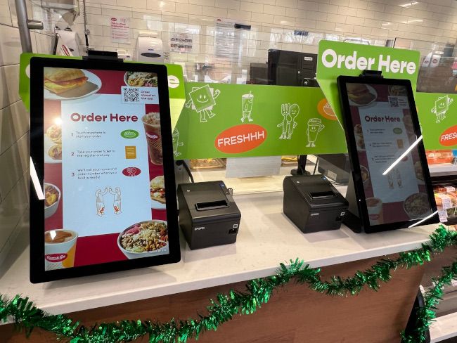 Ordering is done via touch screen kiosk. It’s like a lot of gas stations where you order here then take your ticket to the cash register to be paid for.