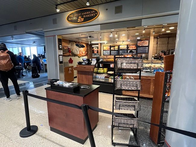 I stopped at The Great American Bagel in Terminal 3 at O’Hare International Airport. We were on an American Flight and Terminal 3 is where many of the larger American Airlines planes depart from. The Great American Bagel is right near the end of the terminal. It’ just a small walk up order restaurant without dedicated seating. There is plenty of seating at the gates though so most people just grab their drinks or food stuffs and go sit down at their gate.