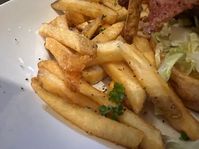 The sandwich came with fries. They were a pretty simple frozen skin on French fry with a delicious and heavy salt and pepper seasoning. There wasn’t a lot on the plate but just enough to compliment the sandwich. We both left pretty full but not over stuffed.