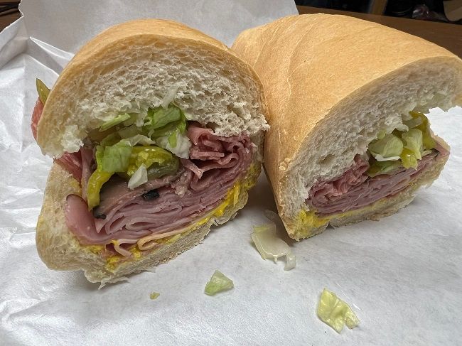The Ski’s Deluxe sandwich is bologna, salami, ham, roast beef, American and Provolone cheeses, mayo, mustard, lettuce, tomato, pickles, onion, banana peppers, and mushrooms. I asked to leave the mayo and onion off. I didn’t see the mushrooms on the menu or I would have kept them off as well. I noticed before the first bite so I just pulled them off.
