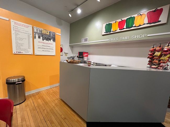 There are arrows on the floor to help guide the way. There is a coffee shop that you see when you walk in and thought that was Ski’s at first but realized it looked more like a coffee shop than a sub shop. I looked down and noticed the arrows that eventually brought me to the right place.