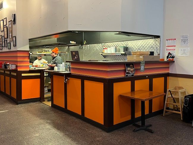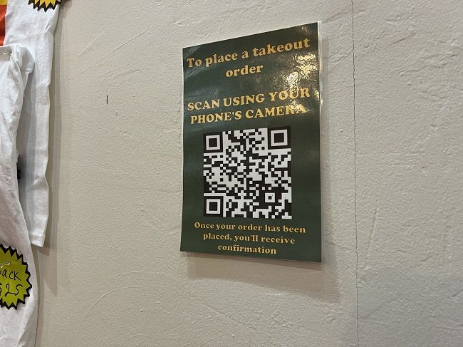 All ordering is done on your phone. If you’re doing carry-out, there’s a couple of signs on the walls with QR codes to put in a carry out order. The restaurant is also cashless and you have to pay online.