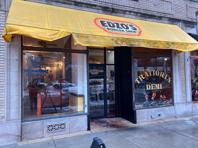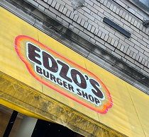 Edzo’s Burger Shop is on Sherman Avenue and Orrington Avenue just south of Davis Street in what I believe is downtown Evanston, IL….at least it felt like a downtown area…it’s a high density commerical district if it’s not actually the “downtown.” The burger shop shares an entrance with an Italian restaurant. Edzo’s takes the signage though and it’s easy to find with the large yellow awning hanging off the building.